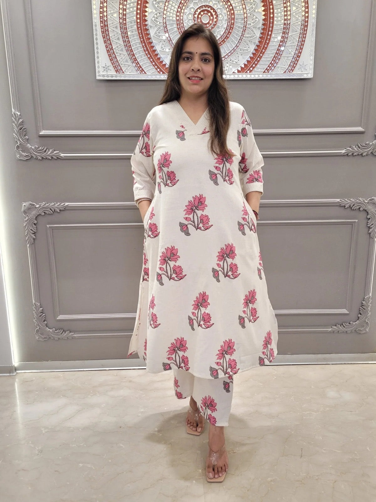 Elevate your everyday style with this cotton flex A-line salwar set for women, the perfect blend of comfort and elegance. Made from soft, breathable cotton flex fabric, it feels light on the skin while the delicate thread work and floral design add feminine charm to your look.